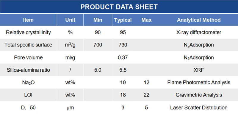Y-type zeolite refers to a diamond-like hexagonal close-packed structure.If the carbon atoms node of the diamond is replaced by taking the β cage as the structure unit, and the two adjacent β cages are connected through a hexagonal prism cage, i.e. 5 β cages are connected through 4 hexagonal prism cages, a β cage is set in the center, and the other 4 β cages are located in the top of the regular tetrahedron, so as to form the crystal structure of octahedral type zeolite.   In case of the continuous connection based on the structure, the structure of the Y-type zeolite can be obtained.   In such a structure, the large cage composed of the β cages and the hexagonal prism cages is an octahedral zeolite cage, in which the communicant window holes are 12-membered ring, and the average effective pore size is 0.74m, which is the pore size of the Y-type zeolite.   The structure of X-type zeolite is completely the same with that of Y-type zeolite, but the silica-alumina ratio of Y-type zeolite is relatively higher, the hydrothermal stability is stronger, and therefore the application of Y-type zeolite is wider.